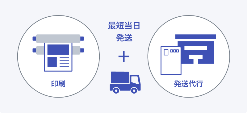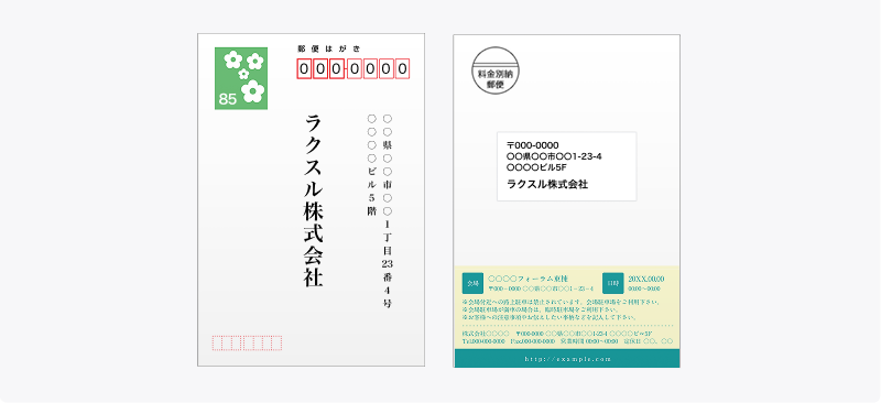 ラクスルでは、裏面の印刷だけでなく宛名印字、発送代行も承っております。